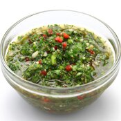 | Aprende a continuación a preparar con la Thermomix una estupenda salsa chimichurri con la que acompañar tus platos preferidos de carne. En pocos minutos la tendrás lista siguiendo nuestra receta. |